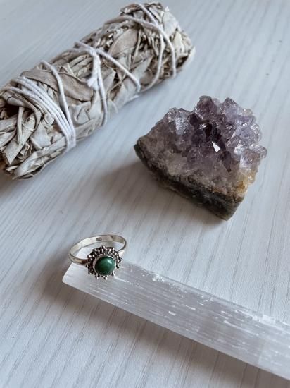 Uranus jewelry マラカイトとシルバードットのプラネットリング