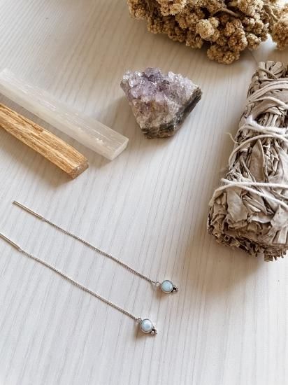 Uranus jewelry ラリマーのシルバーチェーンピアス