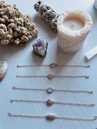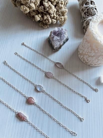 Uranus jewelry シルバーチェーンのストーンブレスレット/ローズクォーツA